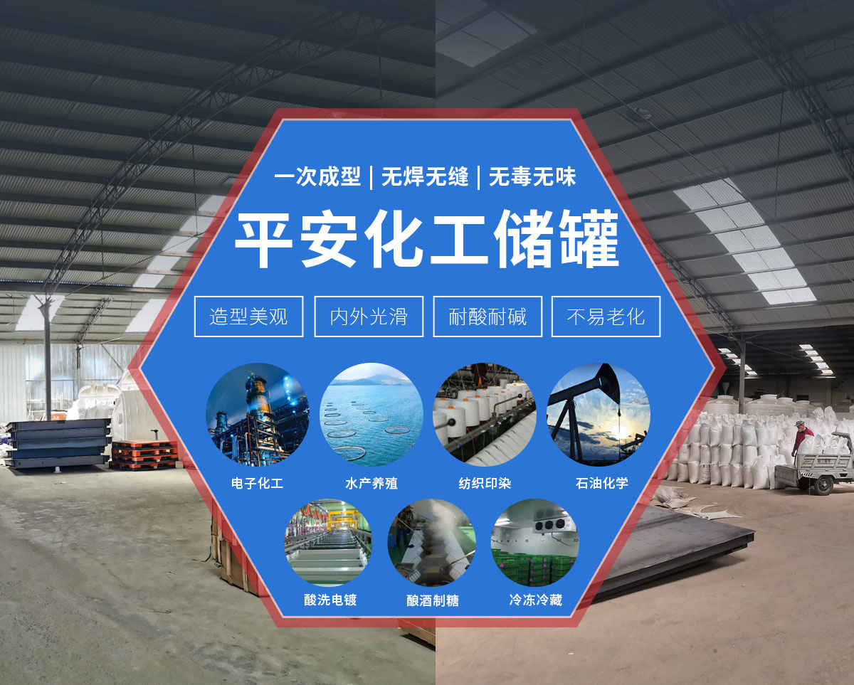 新鄉市平安容器廠建于2008年,是河南省化工儲罐生產廠家之一。本廠采用PE原料生產一次性成型塑膠容器,是同行中產品質量佳、門類全、品種多的優勢企業。產品造型美觀內外光滑,無焊無縫、無毒無味、耐酸、耐堿、耐沖擊、耐高溫(小于等于60攝氏度)、耐冷凍(-20攝氏度),不滲漏、不易老化、無需維修及清洗,安裝運輸方便。廣泛用于高層建筑二次供水、儲水、水處理、電子化工、水產養殖、紡織印染、石油化學試劑、酸洗電鍍、釀酒制糖、蔬菜腌制、冷凍冷藏、茶葉生產周轉箱,環保衛生等多種行業中得到廣泛應用。產品遍布中國大陸,其中水箱產品的正常使用壽命可達10年以上,并且不易結水垢等優點。此產品具有符合衛生標準。本廠現面向社會承接各種形狀水罐(范圍:1T—50T)。  在今后的歲月中本公司堅持“以質量求生存,以信譽求發展”的宗旨,將以完善企業服務回饋朋友的支持與厚愛,并竭誠歡迎您的惠顧!